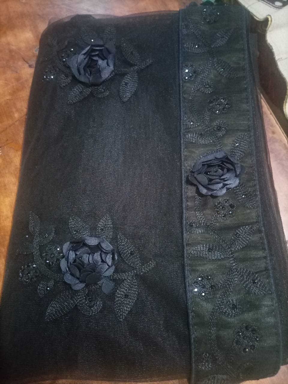 black flower soft net saree+1rediation kit