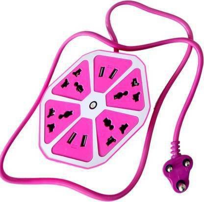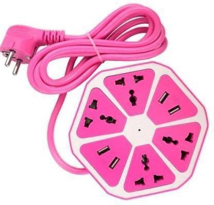 ATARC Hexagon Socket Extension Cord Board with 4 USB 2.0Amp Charging Point 4 Socket Extension Boards PIR5 4 Socket Extension Boards (Pink)