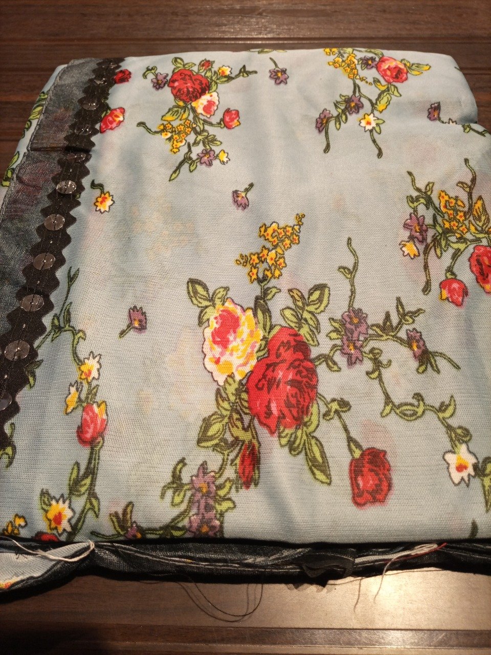 greay flower print saree a505