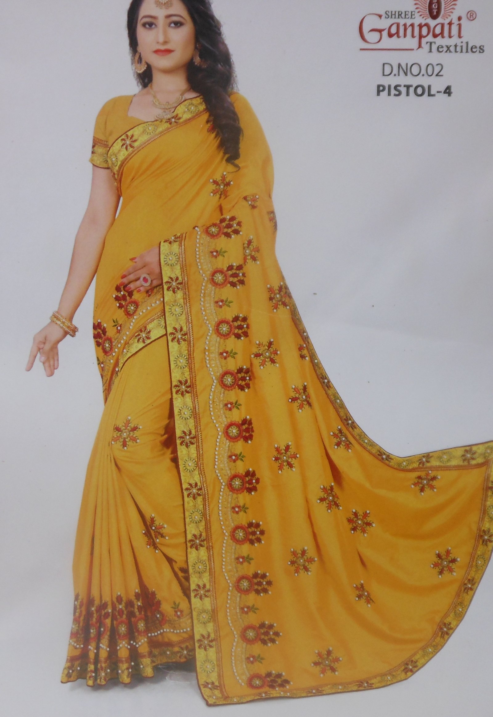 ganpati yellow pistol saree