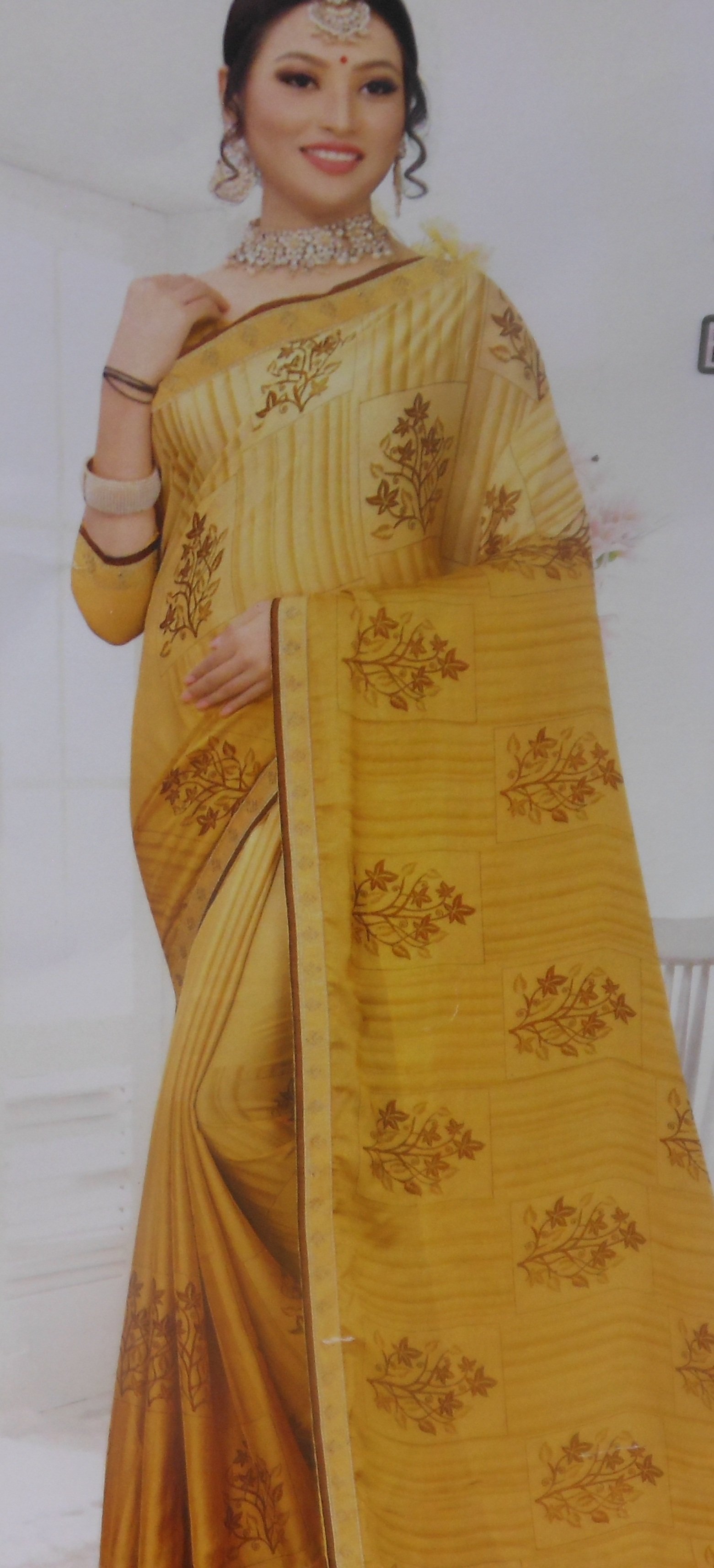 yellow full print saree butterfly